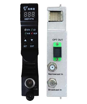 GSDT-FTX光發(fā)射機模塊是專門為現(xiàn)在和將來之HFC及FTTH應用而設計的1310nm直調光發(fā)射機。發(fā)射機使用高性能制冷型1310nm DFB光源,采用先進的預失真電路,使系統(tǒng)具有良好的CTB和CSO特性,其嵌入式單片機處理電路監(jiān)測和控制所有的參數(shù)狀態(tài)及遠程通信,可以通過訪問前面板之LED或EMS設備管理模塊來獲取這些參數(shù)信息。